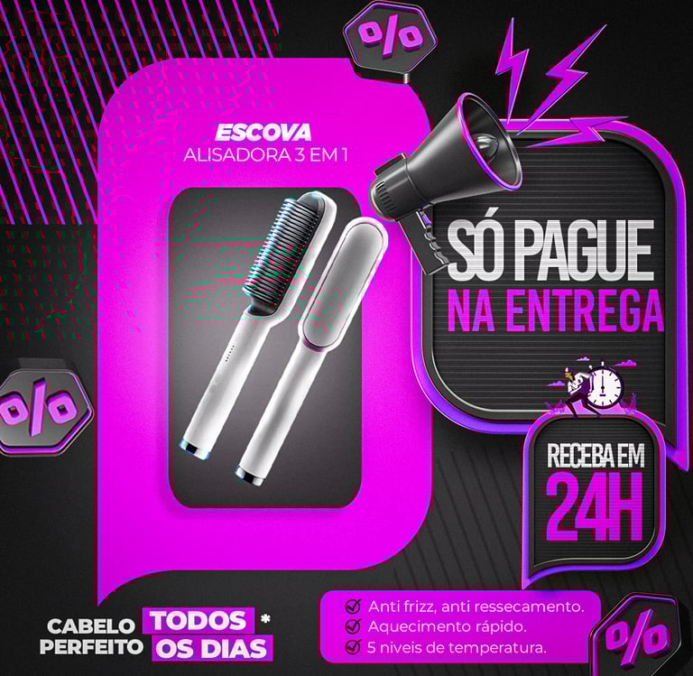 A ESCOVA ALISADORA 3 EM 1 JA CONQUISTOU MILHARES DE MULHERES QUE AMAM UM CABELO IMPECÁVEL SEM PERDER HORAS NO SALÃO.